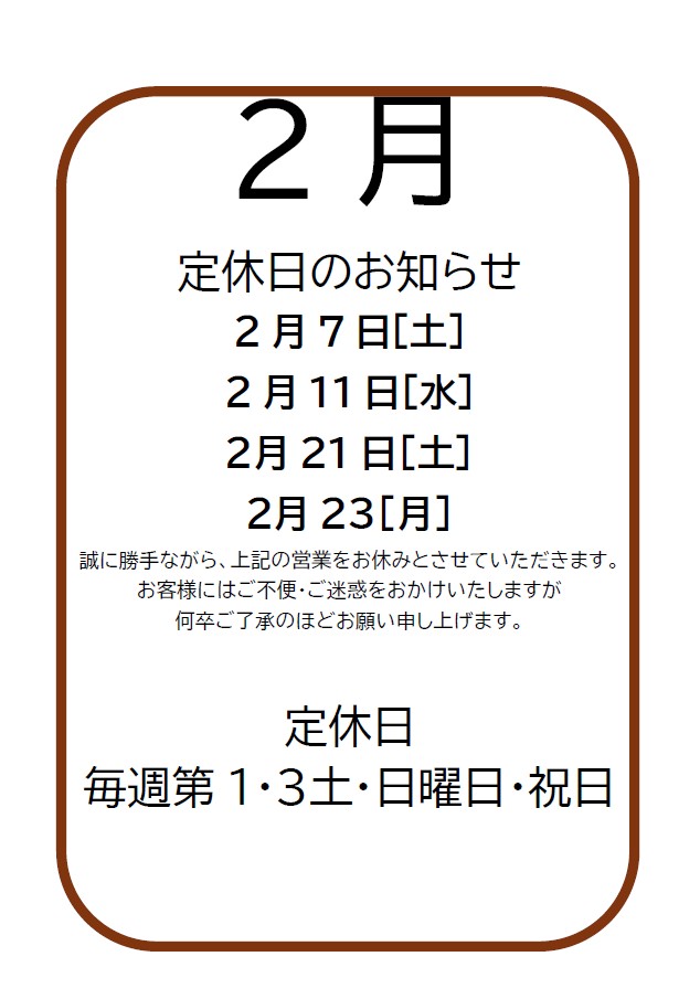 定休日のお知らせ(2月)